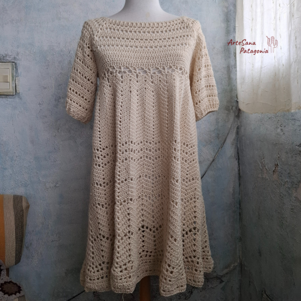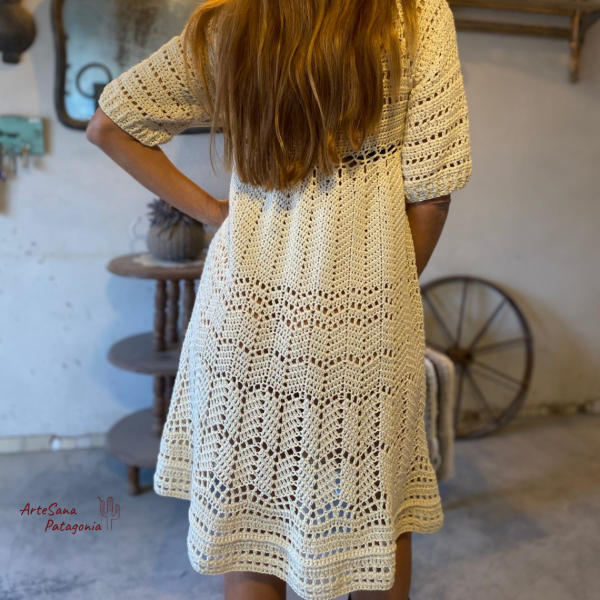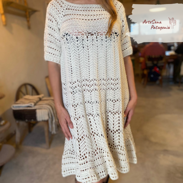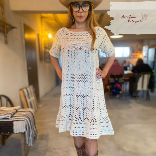Sueño de Verano es un diseño romántico y desafiante. Un vestido de media estación a verano que podés tejer con distintos hilados de grosor fino a DK y en 4 talles diferentes.